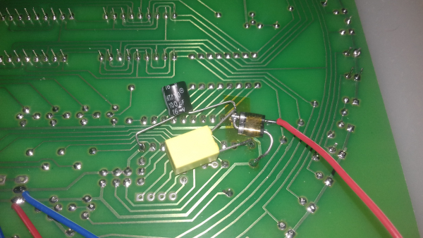 Mé provedení, všimněte si že jsem úpravu provedl nedestruktivně, pin 20 procesoru jsem odizoloval kaptonovou páskou, tak abych neponičil desku: